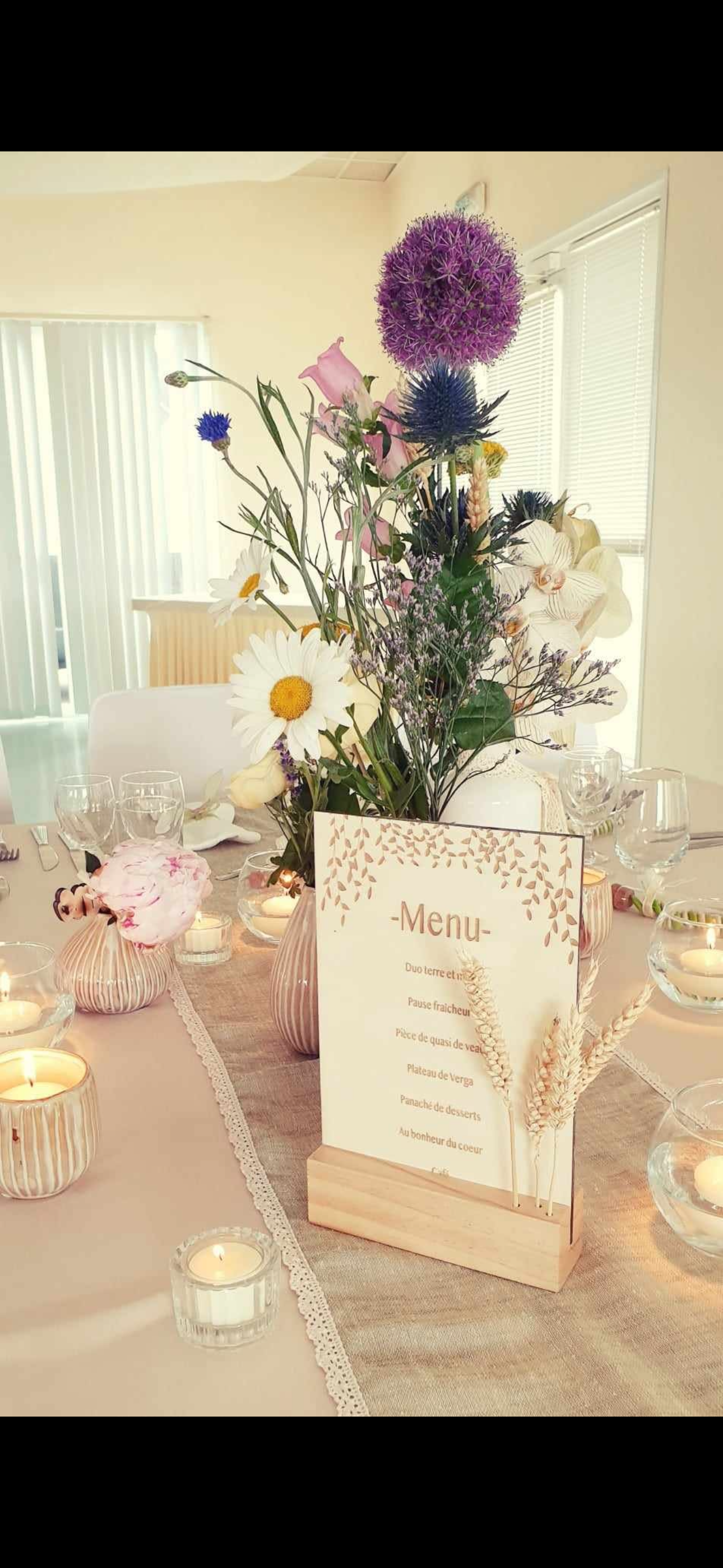- Décoration de table harmonieuse avec fleurs séchées et bougies